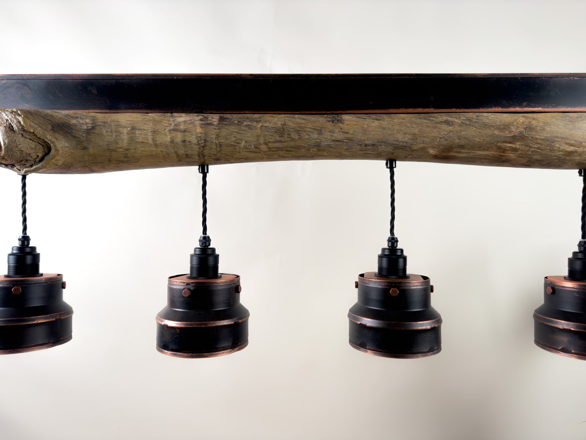 Each piece of aged driftwood carries its own history — paired with hand-finished shades, it creates a statement lighting fixture that feels both rugged and refined.