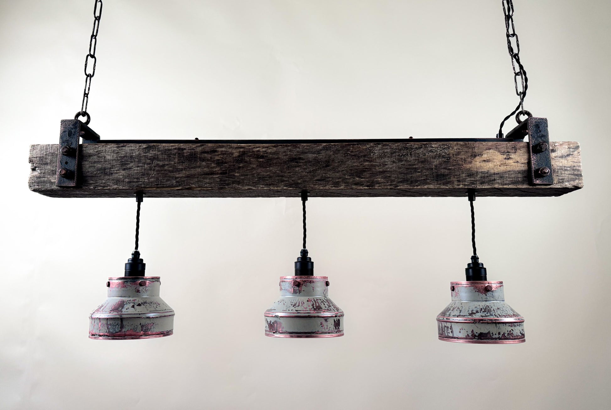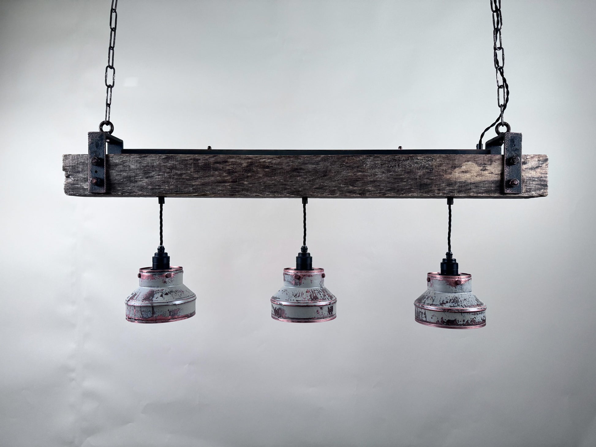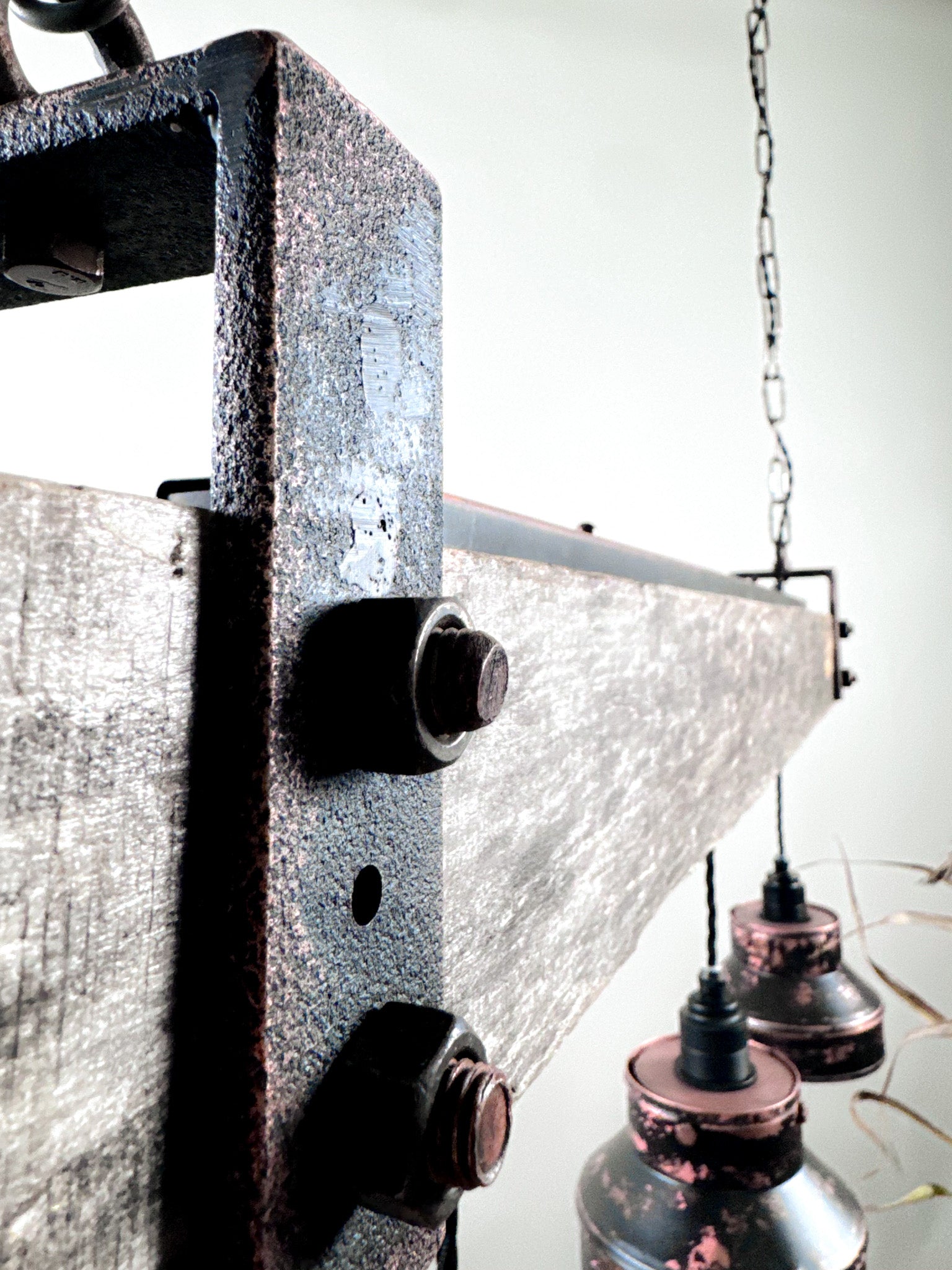 One-of-a-kind lighting sculpture crafted from reclaimed driftwood and aged metal – merging raw texture with sculptural design.