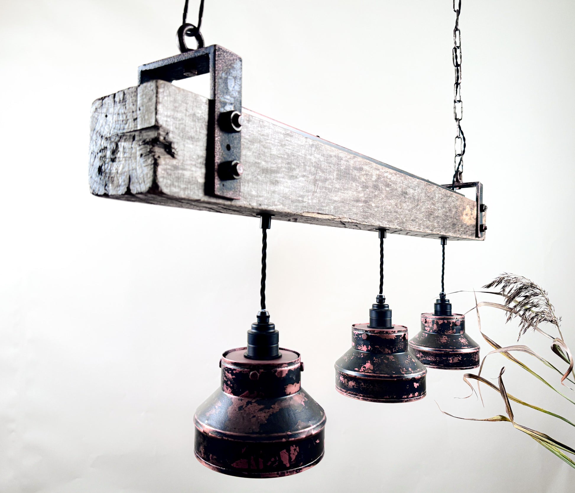 The Driftljus pendant light embodies the soul of coastal minimalism — a fusion of raw, timeworn wood and industrial lampshades.